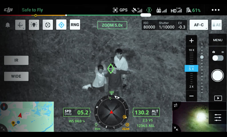 针对人、车辆和船只等移动中的目标,可实现自主识别、定位并持续跟踪。辅以自动变焦功能,目标将始终处于画面中心位置,并保持合适比例以便查看。同时可通过另一个遥控器或司空2 将目标信息共享给团队其他成员。