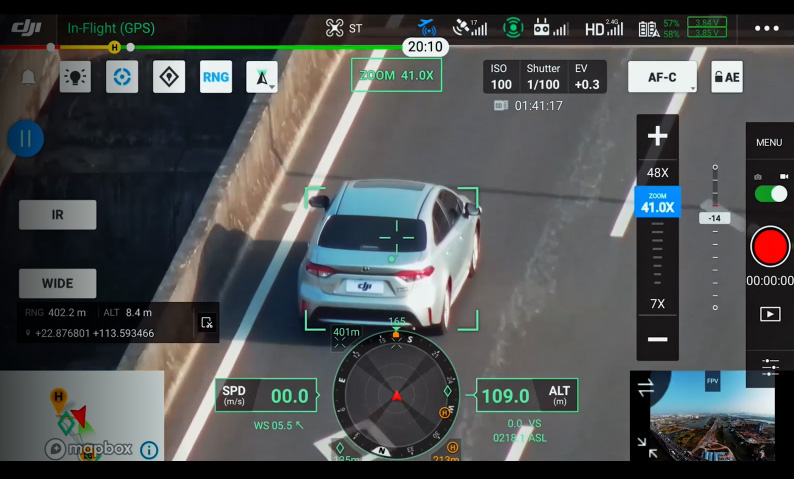 经纬 M300 RTK 引入全新的飞行辅助界面,将飞行参数、导航、障碍物地图等多维度的关键信息整合至同一界面,赋予作业人员强⼤的态势感知能力。
