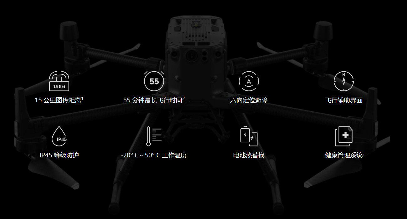 现代航空系统与大疆行业级无人机技术在此融合。经纬 M300 RTK 拥有 55 分钟长续航、强大的机器智能及六向定位避障等诸多强项,以实力刷新想象,成为行业级无人机全新标杆。